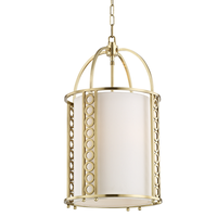 Four Light Pendant from the Infinity collection in Aged Brass finish. Infinity`s basic shapes stand ready to complement various spaces. Its contrast of hard metal with smooth linen makes for an endlessly elegant contrast.