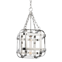 One Light Pendant from the Colchester collection in Polished Nickel finish. Old-fashioned luggage wrapped thick leather bands around robust square and rectangle forms, resulting in something so durable and handsome, vintage pieces of the type are still desirable. Colchester`s open frame of metal bands recalls these beautiful suitcases. Over-scaled rivets add a refined detail where they hold these overlapping bands together. At Colchester`s center, tubular exposed-filament bulbs evoke the vintage of the luggage that inspired the fixture, while providing exceptional mood lighting.