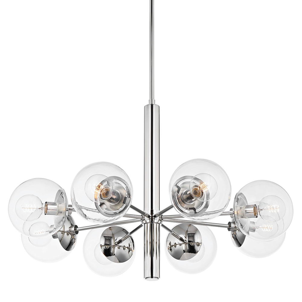 Eight Light Chandelier from the Meadow collection in Polished Nickel finish. The last globe light you`ll ever buy. Perennially chic, Meadow adds simplistic beauty to any space in your home. The mix of delicate glass and timeless steel is decidedly modern with a slight nod to mid-century design. The Meadow collection includes wall lighting and ceiling lights. Available as a chandelier, wall sconce, semi-flush, flush mount, and pendant.
