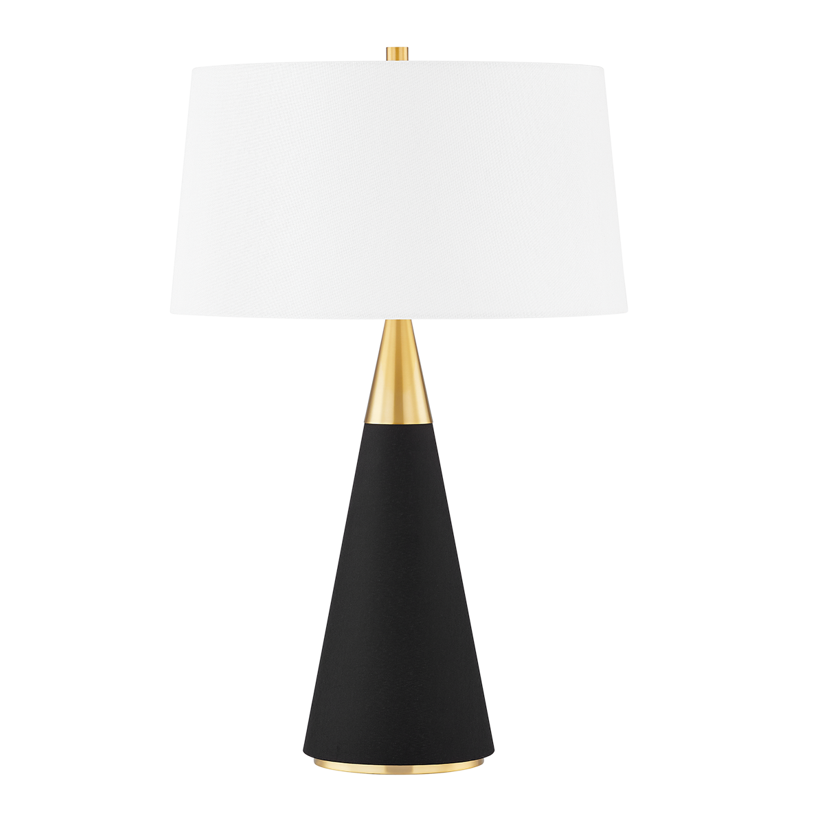 One Light Table Lamp from the Jen collection in Aged Brass/Black Linen finish. Jen is a beautiful, natural way to bring the allover same materiality trend to a room. The linen adds texture and intrigue to the mid-century modern design, making this sculptural table lamp feel very of the moment. Bring drama with the contrasting black linen base and white linen shade or go for something softer with the base and shade both in cream linen. Part of our Home Ec. x Mitzi Tastemakers collection.