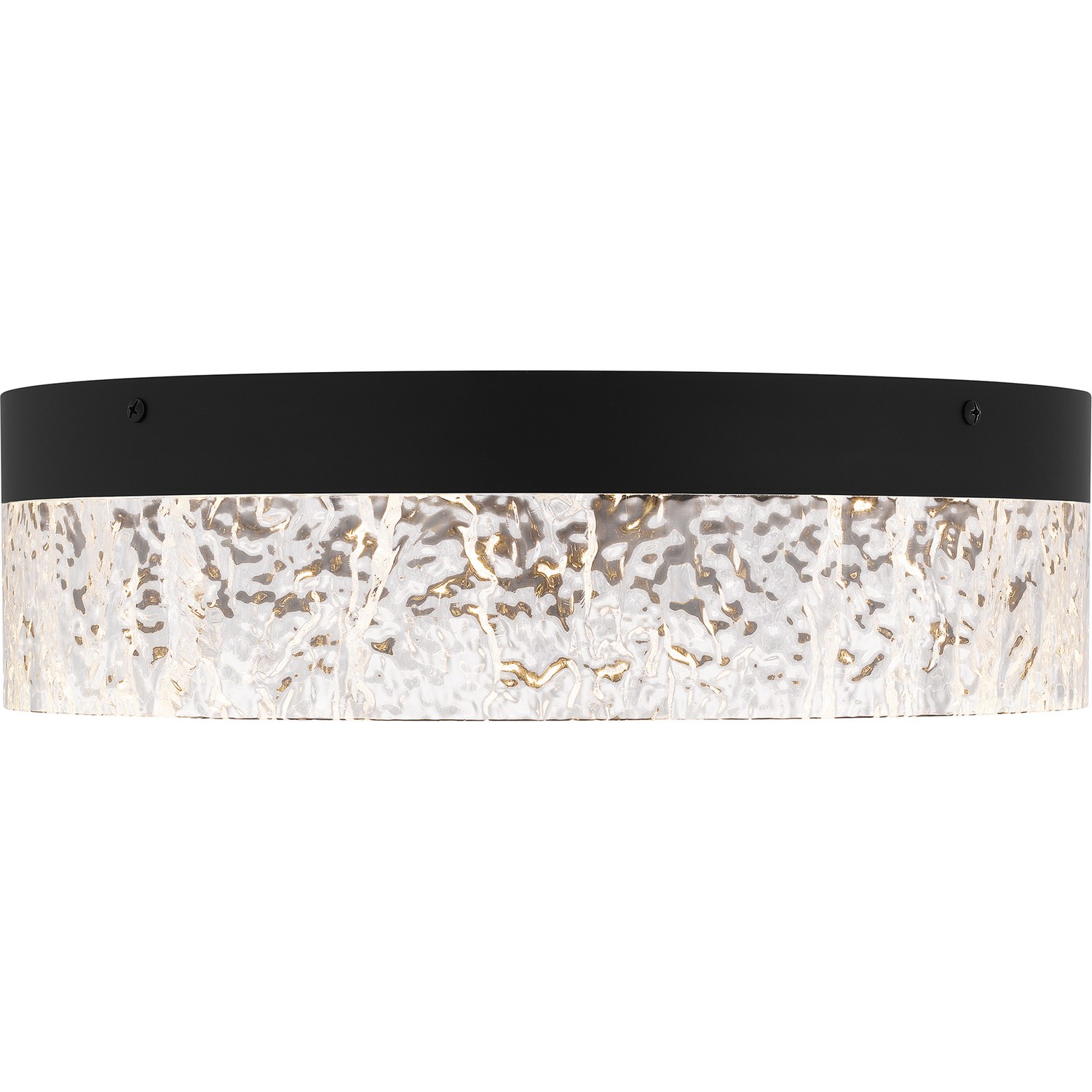 The Vistaria flush mount is simple with a contemporary flourish. The minimalist silhouette features a clear textured acrylic shade and your choice of matte black or brushed gold finish . An integrated LED is included for energy-efficient illumination. Use this versatile design in a range of spaces: hallways, laundry rooms, entryways, bathrooms, and more.