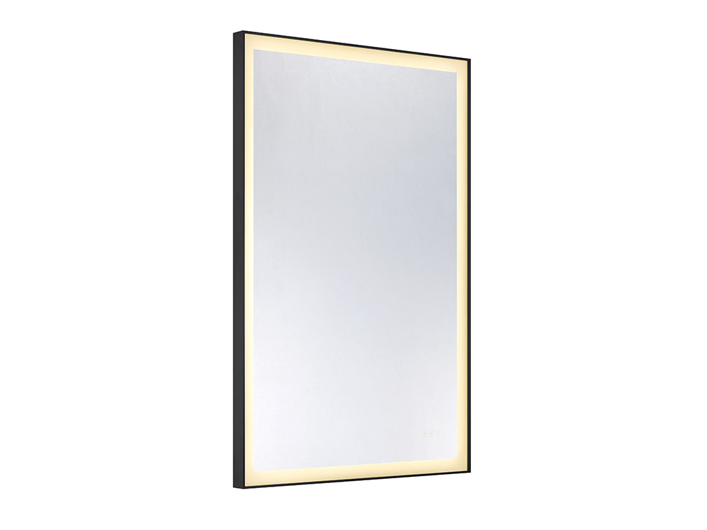 LED Mirror from the Paulding collection in Black finish. The Savoy House Paulding rectangular framed LED mirror is truly a work of functional art. Within a frame in a bold Black finish, this sleek design brings you bright illumination and convenient touch controls! Choose from three different color temperatures – 3000K, 4500K and 6500K – to discover your ideal glow. Use the stepless dimmer to increase or decrease the brightness. Keep things clear with the defogger, which shuts off automatically after one hour. Paulding even remembers and restores the last used illumination setting for even more convenience! This mirror is free from lead and copper, comes with mounting hardware and is backed by a 3-year warranty. Uses 64 watts to deliver 1242 lumens at a CRI of 90+. Suitable for damp locations. Paulding is 32″ in height, 48″ in width and extends 2″ from the wall. Can be mounted horizontally or vertically.