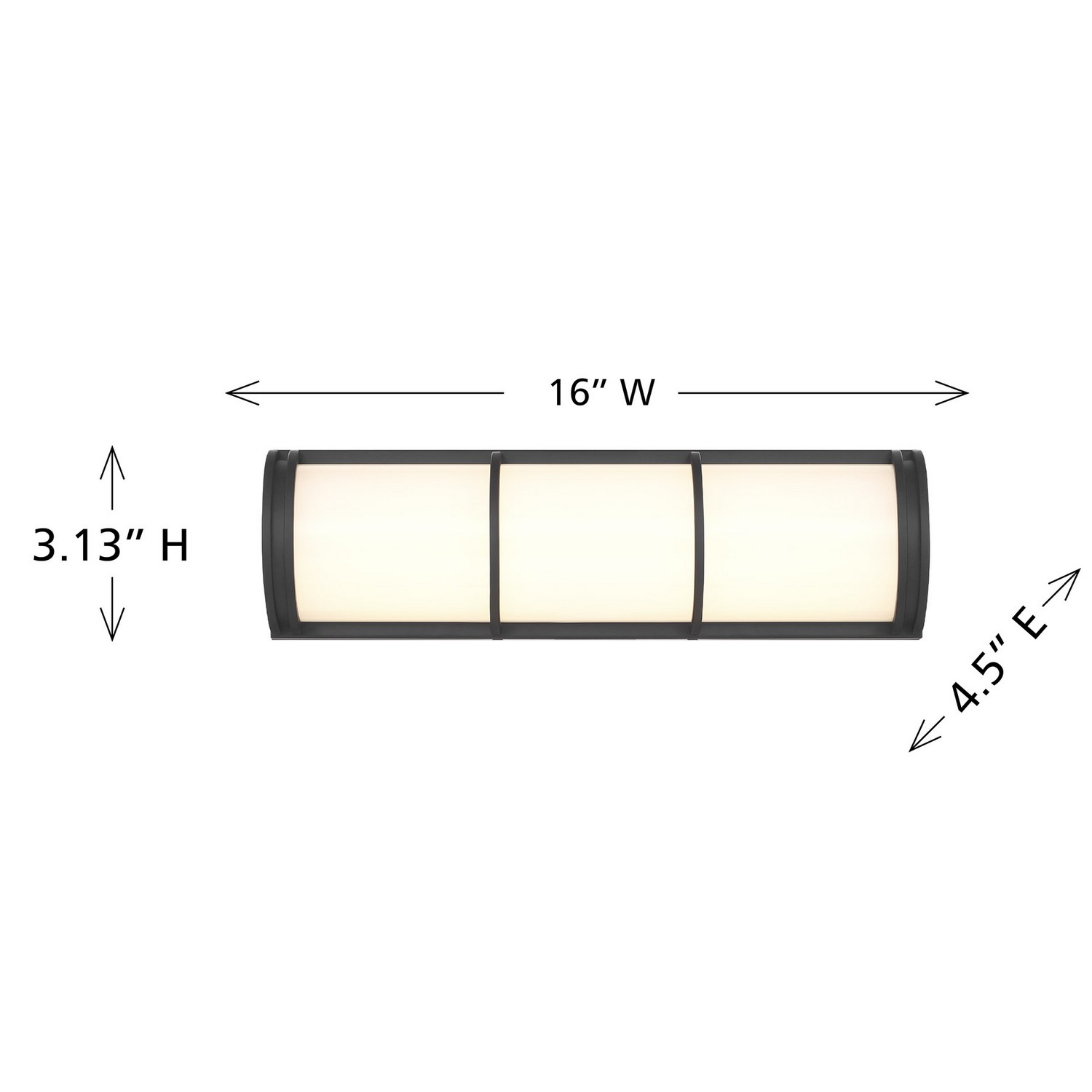 LED Bathroom Vanity from the Harper collection in Matte Black finish. This Savoy House Harper LED wall light has a super sleek and chic look that makes it an ideal solution for bathroom vanities, hallways, foyers or any other space that needs a big dose of bright, contemporary illumination. The etched white glass shade is accentuated by slim detailing that is finished in Black, creating a perfect pairing. Harper is 4.64″ in height, 16″ in width and extends 4.5″ from the wall. It is illuminated by integrated LED light, giving off 1300 lumens at a CRI of 90 and a color temperature of 3000K.